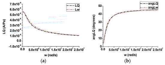 Figure 8 shows the variation in the amplitude and phase of the streaming current coupling coefficient with frequency in the time-harmonic case. It can be seen from Figure 8 that the amplitude and phase curves of the coupling coefficient calculated using the two methods almost overlapped. As the frequency increased, the amplitude of the coupling coefficient decreased and the phase increased and approached a constant value ().