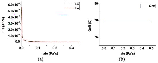 Effect of the viscosity (steady case): (a) streaming potential coupling coefficient; (b) effective net residual charge density.