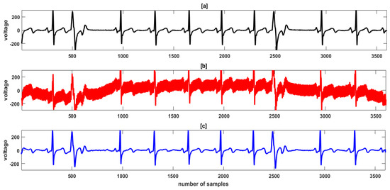 - Sharma, R.R.; Pachori, R.B. Baseline wander and power line interference removal from ECG signals using eigenvalue decomposition. Biomed. Sig. Proc. Contr. 2018, 45, 33–49. [Google Scholar] [CrossRef]