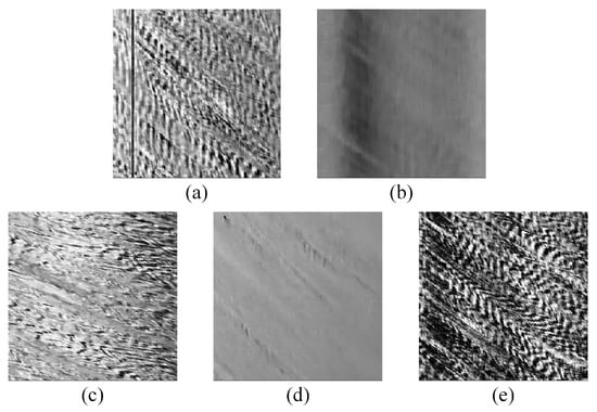 When producing the dataset, the video-generated STIs often contain more noise, and some regions are blurred, which will affect the quality of the dataset. In this study, Multi-Scale Retinex (MSR) [] was used for image enhancement of STIs. The enhancement effect of MSR on space-time images is shown in Figure 9a,b, and the texture features of space-time images became clearer after MSR enhancement. This method is particularly suitable for space-time images in the case of dark backgrounds. The corresponding frequency-domain STIs before and after MSR enhancement are shown in Figure 9c,d.