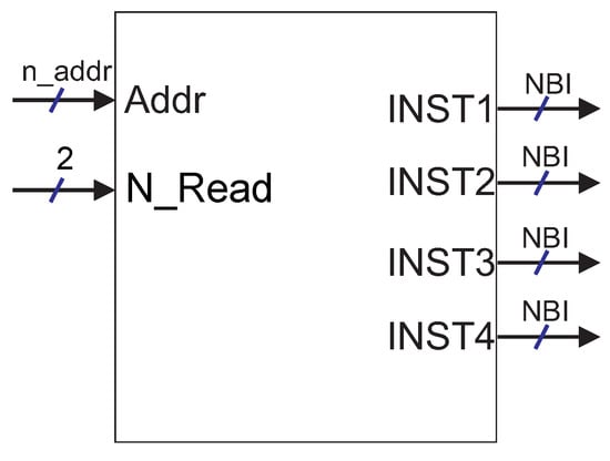 Figure 4 presents the logic block of the program memory. The length of input Addr (address of the current instruction) is proportional to log base two of the number of instructions stored in the program memory. The input N_Read indicates how many instructions should be read simultaneously at the output (available only in the superscalar version). Outputs INST, INST2, INST3 and INST4 have the length equal to the instruction word.