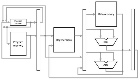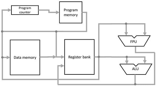 The most important element of an embedded system is the microprocessor. This element must be, in some cases, developed specifically for a given system, which has requirements in terms of circuit area, power consumption, and performance, and is dependent on the application and on the implemented functionalities []. With the growing demand caused by IoT, new functionalities are required, which increases design complexity [,]. Furthermore, there is strong pressure for fast implementation of technological solutions in the globalized market. This forces companies to design new embedded systems within ever narrower time windows. In addition, new products have a shorter service life, so that the financial return must be obtained in a very short time [].