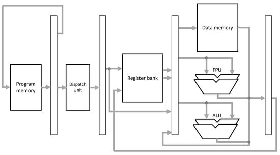 - Pees, S.; Hoffmann, V.; Zivojnovic, V.; Meyr, H. LISA—Machine description language for cycle-accurate models of programmable DSP architectures. In Proceedings of the 36th Anual ACM/IEEE Design Automation Conference, DAC 99, New Orleans, LO, USA, 21–25 June 1999; pp. 933–938. [Google Scholar]