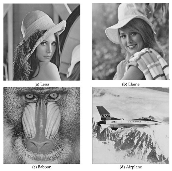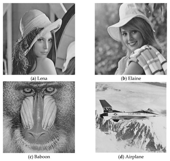 Four original grey-scale images: (a) Lena, (b) Elaine, (c) Baboon, and (d) Airplane.