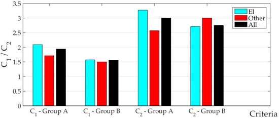 (III) Results of the mini-project. Figure 9 shows the results of the evaluation of the mini-project reports. For both criteria, C1 and C2, treatment group A scored higher, on average. For criterion C1, the students in group A fully executed an average of 1.94 out of a total of three of the proposed CPU instruction set extensions, while the students in group B executed an average of only 1.56 instruction sets. For C2, treatment group A showed an average 8.3% higher level of CPU architecture extension complexity in the mini-project. In both groups, A and B, the EL study track students executed more CPU proposed instruction extensions on average (C1) than did the students in the Other study tracks.