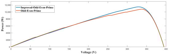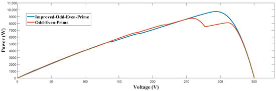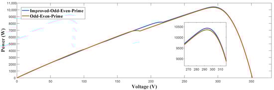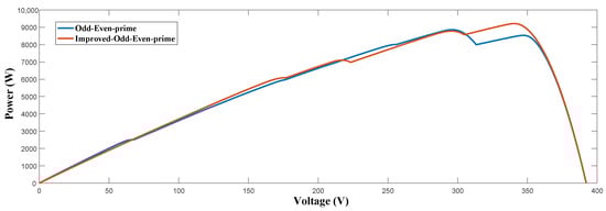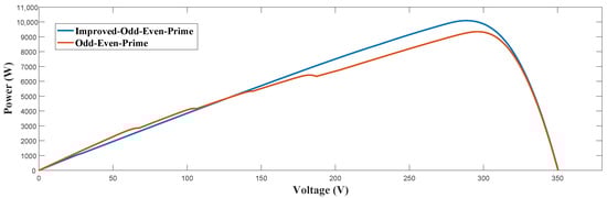 From the Figure 5, it can be observed that maximum power generated by OEP and IOEP are 10,795 W and 11,064 W, respectively. The power generated by IOEP reconfiguration is 2.5% more than OEP reconfiguration.