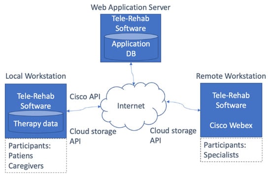 The telerehabilitation system contemplated two types of workstations, namely patient side (local) and specialist side (remote), as Figure 2 shows.