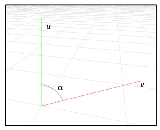 Then, the angle αmno formed between the 3D vectors u and v was calculated as follows: