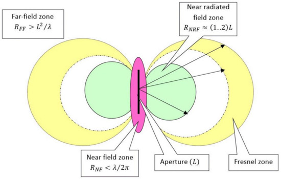 The electromagnetic field created by a source of finite electrical dimensions has a different structure depending on the position of the observation point [10]. Figure 1 shows the radiation zones characteristic of a source of finite dimensions.