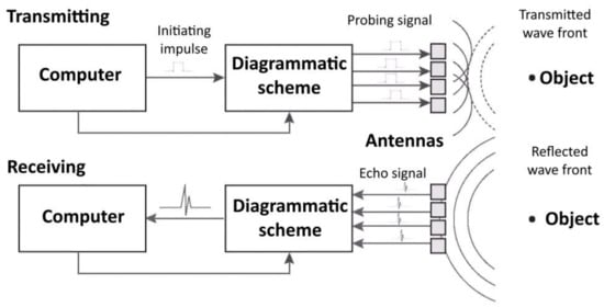 Methods of non-destructive radio wave testing are widely used in various fields of industry [1,2,3]. In general, such methods can be distinguished into active and passive diagnostic methods. In the active methods, to detect internal defects in the object under test, an electromagnetic wave is excited, and the presence and parameters of waves reflected from irregularities are recorded. In the passive methods, used particularly in medical diagnostics, the receiving equipment detects a local source of anomalous intrinsic radio thermal radiation.