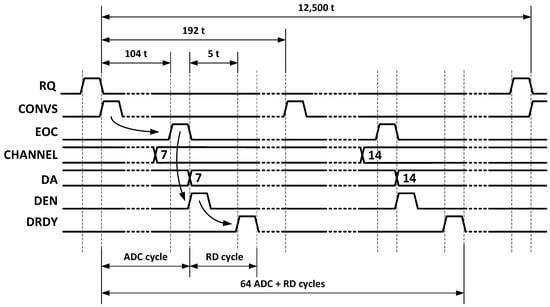 The measurement timing waveforms are shown in Figure 7. The implementation utilizes two ADC channels that are alternatively selected by the control unit to assure uniform distribution of measurement points in both current measurement channels. The distance of samples is 192 clock cycles. In total, 32 samples are collected for input current for each channel during one period of operation.
