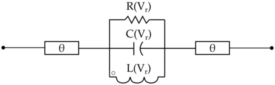 A previous study [22,23] demonstrated that both DR and ring resonator filters can be modeled according to a series of RLC circuits regarding resonance frequency. In [24], the authors derived the equivalent circuit parameters via numerical electromagnetic simulations. In this paper, we derived an equivalent circuit model for the varactor-based tuneable DR band-stop filter of Figure 1 that is capable of providing insight into its mode of operation, justifying the design principle discussed above.