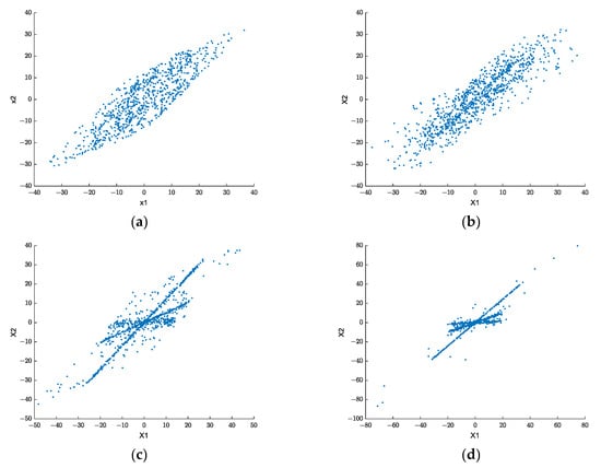 In the ‘two-step method’ proposed by Bofill [], the time domain mixed signal is used to find the sparse representation model of the mixed signal through Fourier transform (FT), and the potential function method is used to cluster to obtain the mixed matrix estimation. The experimental results are ideal but have shortcomings. On the one hand, the amount of data to be processed is too large, and the calculation is complex. On the other hand, the clustering method of the potential function selected by Bofill does not estimate three or more observation signals, which places high requirements on the number of source signals and has limited applications.