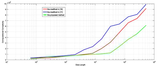 In addition, the mixed matrix estimation accuracy obtained by DBSCAN-FrFT is the best. In this paper, the algorithm proposed in [,] is compared with DBSCAN-FrFT. Firstly, the computational complexity is compared. The results are shown in Figure 14: