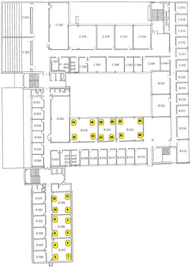 - Bargh, M.S.; de Groote, R. Indoor Localization Based on Response Rate of Bluetooth Inquiries. In Proceedings of the First ACM International Workshop on Mobile Entity Localization and Tracking in GPS-Less Environments, San Francisco, CA, USA, 14–19 September 2008; Association for Computing Machinery: New York, NY, USA, 2008; pp. 49–54. [Google Scholar] [CrossRef]