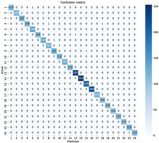 - F1-score—The F1-score is a metric used to evaluate the performance of a classification model. It is calculated by taking the harmonic mean of Precision and Recall. Precision is the number of accurate positive predictions divided by the total number of positive predictions, and Recall is the number of accurate positive predictions divided by the total number of actual positive instances. The F1-score is calculated using the following formula:This metric provides a balanced measure of the model’s performance, considering both precision and recall [45]. The F1-score will take values within the range, achieving the minimum for , that is, when all positive samples are misclassified, and the maximum for , which is for perfect classification [63]. When dealing with multi-class cases, F1-Score should include all classes. To do so, we need to incorporate a multi-class measure of Precision and Recall into the harmonic mean. These metrics may have two distinct specifications, resulting in two distinct metrics: Micro F1-Score and Macro F1-Score.
