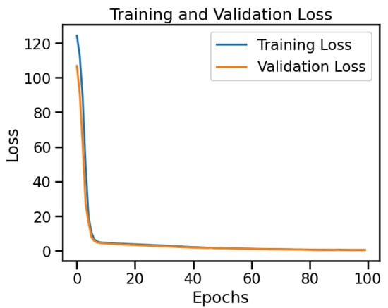 ANN regression proves highly effective when dealing with highly non-linear datasets. Including activation functions within each hidden layer of an ANN facilitates its capacity to comprehend intricate non-linear associations between input features and the target variable. This capability enables ANNs to make highly accurate predictions, particularly when complex, non-linear relationships exist in the data [4]. Our study employs a network architecture comprising five hidden layers to explore and leverage these capabilities. We initially started with fewer hidden layers for ANN regression. However, we discovered highly non-linear connections between the input features and the target variable. As a result, the model’s capacity to approximate those relationships was improved by adding more hidden layers (five). Figure 6 shows the epochs vs. loss for ANN regression.