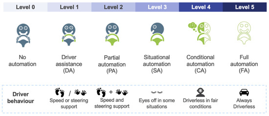 - Taxonomy, S. Definitions for Terms Related to Driving Automation Systems for On-Road Motor Vehicles (j3016)SAE. Taxonomy and Definitions for Terms Related to Driving Automation Systems for On-Road Motor Vehicles. 2018. Available online: https://www.sae.org/standards/content/j3016_201806/ (accessed on 18 January 2021).