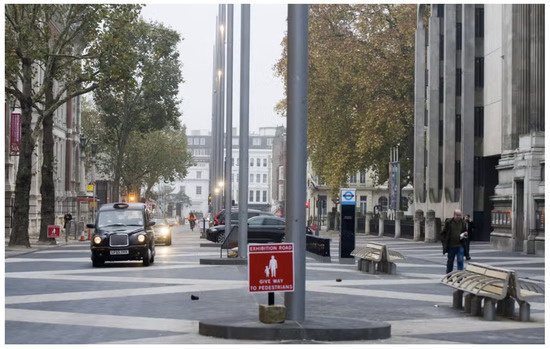 Shared space area on Cromwell Road, London.