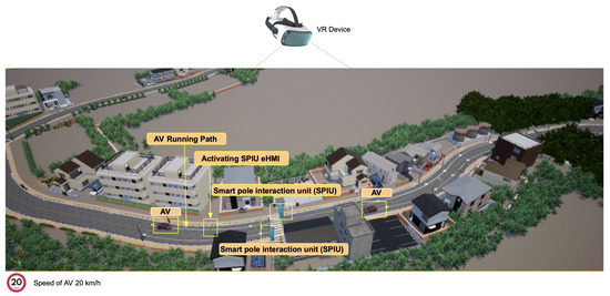 This subsection will describe each scenario of the proposed SPIU method. The SPIU and virtual reality concept is described in Section 3.1.3. The role of the participant step is provided in Section 3.2. The usability of the smart pole interaction unit is described in Section 3.2.1. In Section 3.2.2, we explain why SPIU is more effective in shared space than traditional traffic lights. The description of the Unreal Engine is given in Section 3.3. We also include the scenarios used in VR, which are played during testing.