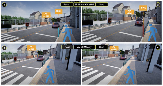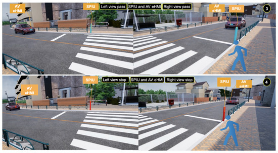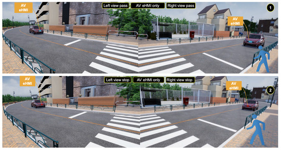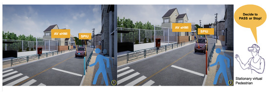 SPIU interaction with an AV eHMI for (1) Pass and (2) Stop.