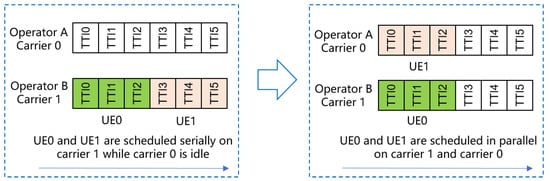 Therefore, it is essential to coherently allocate time-domain resources among different operators. This involves scheduling users with varying priorities on different carriers simultaneously, reducing scheduling delays for low-priority users.
