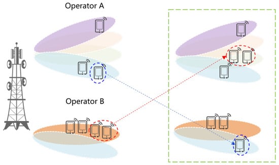 Mobile communication network co-construction and sharing among multiple telecom operators effectively alleviate the aforementioned issues [13]. Specifically, different operators can engage in various degrees of cooperation or sharing regarding telecommunications network infrastructure, network equipment, and spectrum resources [14]. The infrastructure mainly includes site-related facilities such as site locations, equipment rooms, towers, power supply equipment, etc. Network equipment comprises telecommunication network devices such as base stations, transmission equipment, etc. The aforementioned approach can significantly reduce the number of sites, prevent redundant infrastructure construction, lower system energy consumption, enhance resource utilization efficiency, and expeditiously establish leading network infrastructure capabilities. However, after co-construction and sharing, spectrum resources increase, and network scenarios and network systems become complex. The questions of how to make full use of the advantages of increased spectrum resources after sharing and achieve reasonable resource allocation are paramount to improving user experience. In addition, it is noted that spectrum sharing for unlicensed frequencies can also increase resource utilization, which is another important topic that needs to be explored [15,16,17].