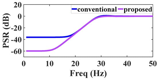 Comparison of the PSR of (a) conventional regulator and (b) proposed regulator.