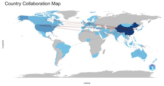 China emerges as the most active country in terms of collaborations, a fact previously mentioned in Section 4.1, where it was observed that a substantial number of the highest document-producing affiliations were Chinese. Notably, China’s primary collaborations involve Hong Kong and the USA, with 38 and 34 collaborations, respectively. However, when considering collaborations with other countries such as Canada, the UK, Germany, Australia, and Japan, the number ranges from 10 to 22 collaborations. For the USA, the highest number of collaborations is with Germany, with a total of 9 joint projects.