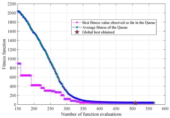 The results obtained using this approach represent solutions that are in close proximity to the global optimum while simultaneously preserving the structural integrity and not disrupting the underlying physics. Moreover, this method acknowledges the delicate balance between achieving the desired results and the time invested in the optimization process. Consequently, the stopping criterion was not rigidly set to FF = 0, where the fitness value reaches its absolute minimum. The definition of the stopping criterion is a critical factor influencing the algorithm’s convergence. In this particular case, the optimizer concludes its operation when the diversity among the sampled candidates in the queue drops below a predefined threshold. At this juncture, the best parameters discovered are regarded as the global optimum. It is worth noting that this global optimum may differ slightly from the true global best, but it remains effective in addressing the specific design problem under consideration.