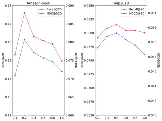 - He, X.; Deng, K.; Wang, X.; Li, Y.; Zhang, Y.; Wang, M. Lightgcn: Simplifying and powering graph convolution network for recommendation. In Proceedings of the 43rd International ACM SIGIR Conference on Research and Development in Information Retrieval, Online, 25–30 July 2020; pp. 639–648. [Google Scholar]