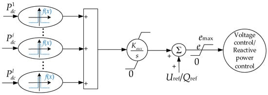 The above goal is achieved via auxiliary control signals to the dynamic reactive power compensation device. In general, dynamic reactive power compensation devices can be divided into two categories according to the control objectives, namely, fixed voltage reactive power compensation devices and fixed power reactive power compensation devices, both of which can have auxiliary controllers with the structure shown in Figure 2.