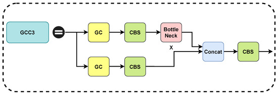 In order to enhance the feature extraction capabilities of YOLOv5s, a novel network feature module named GC-C3 block is introduced. This module combines the Global Context Block and the C3 block, as depicted in Figure 4. The GC-C3 block structure incorporates the GC block into both branches of the C3 block. By integrating these components, the module enables the extraction of long-range contextual feature information, ultimately enhancing the network’s performance.