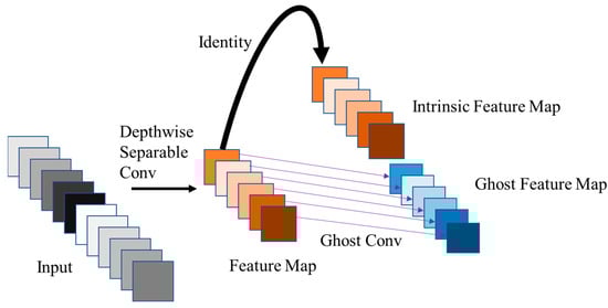 Technically, according to specific filters, our previous work [5] performed traditional convolution operations to obtain intrinsic feature maps and then took simple linear transformations to obtain ghost feature maps. In such a way, we can fulfill the overall feature maps and save time to compute traditional convolution operations. The time complexity of the traditional convolution, ghost convolution, and depthwise separable and ghost convolution are O(), O(), and O(), respectively. We defined the notation of time complexity as follows: