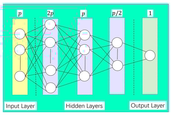 Multilayer perceptron (MLP) is one popular deep learning network [28], which is a fully connected network with multiple hidden layers. An MLP network can be applied in a regression problem, which focuses on the relationship between an output parameter and input parameters. When the depth of the MLP model is , the training process of the MLP network model aims to learn the bias term and the parametric matrix through minimizing the following optimization problem: