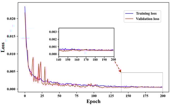The proposed model training and validation losses at various epoch numbers.