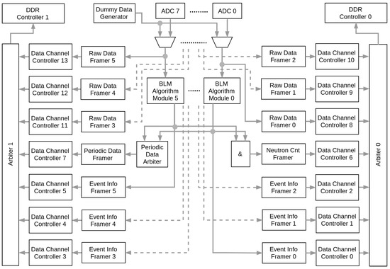 The data streams generated by both systems vary in terms of required memory bandwidth—the nBLM is a more demanding one as it generates 3 GB/s (16-bit 250 MHz data for 6 channels) of raw data, so the DAQ part must fulfill this requirement.