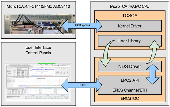 - Martins, J.P.; Farina, S.; Lee, J.H.; Piso, D. MicroTCA.4 Integration at ESS: From the Front-End Electronics to the EPICS OPI. In Proceedings of the 16th International Conference on Accelerator and Large Experimental Physics Control Systems, Barcelona, Spain, 8–13 October 2017. [Google Scholar] [CrossRef]