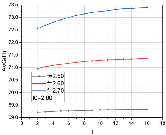 Figure 2 shows that an increase in the clock frequency leads to an increase in the power consumption of the peripheral server. Manipulation of the threshold value affects only the intensity of growth of the graphs, but not the overall trend. But note that these graphs are obtained for a fixed value of , while . The situation was not considered in the formalization of the energy consumption management policy, but the model shows signs of survivability, the limits of which can be further explored.