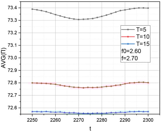 Since characteristic (9) depends on time, it is expedient to investigate the averaged version of this characteristic, i.e., . Let us define a sufficiently long time interval , in which is the interval during which all functional and service operations performed periodically by the peripheral server are fully manifested. Under such circumstances, we formalize the characteristic with the expression