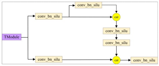 In the substation scenario, where the background complexity is high, this paper proposes a redesign of the feature extraction module, as shown in Figure 3, to better capture the local features and contextual information of personnel falls. The input of the customized module is first split, and each branch compresses the number of channels by half using a 1 × 1 convolution. Then, the upper branch continues to split, maintaining spatial invariance of features with a 3 × 3 convolution and a stride of 1, then stacks with the lower branch. The features are then integrated through a 3 × 3 convolution and a 1 × 1 convolution before being stacked and merged with the original branch. Finally, the features are output through a 1 × 1 convolution. This module is placed in the neck of the feature extraction network, enhancing the feature extraction capability of the convolutional neural network while reducing model complexity.