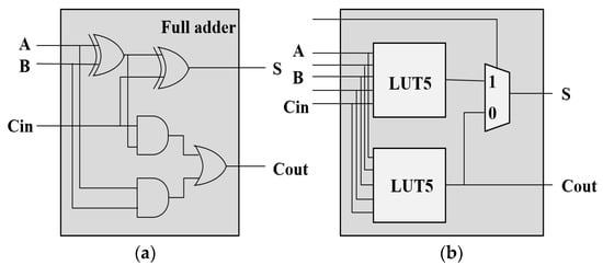 Full adder deployment. (a) Logic gates; (b) LUT.