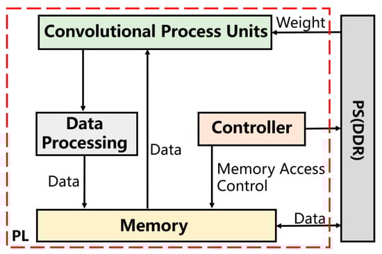 The existing literature on convolutional process units implemented on FPGA is extensive and focuses mainly on multiplier or adder optimization. That is, without giving regard to the accurate intermediate computations, approximate operations have been employed to further reduce the hardware cost and promote the energy efficiency. For example, G. Lentaris and Z. Ebrahimi used optimized approximate logarithmic multipliers for convolutional process units [5,6]. G. Csordas converted the similar weights into a canonical signed digit code, then a multiplier was employed for each code [7]. H. Zhang [8] and C. Lammie [9] employed the Karatsuba algorithm and random calculation to realize approximate multipliers. In addition, approximate adders were also proposed to optimize convolutional process units in [10,11,12]. Nevertheless, in fact, compared with the accurate multipliers, despite the saving of hardware resources, the inevitable loss of accuracy may easily reduce the performance of a CNN.