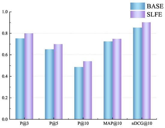 Through experiments, we observed that the SLFE module prioritizes results that exhibit greater structural and length similarity to the query expression. The relevance scores of the retrieved expressions were used to calculate P@k, MAP@10, and nDCG@10 values. We evaluated the impact of SLFE re-ranking on image-modal retrieval by comparing P@k, MAP@10, and nDCG@10 values. The results in Figure 6 show that SLFE significantly improves both retrieval accuracy and ranking results by attending to symbol-level features.