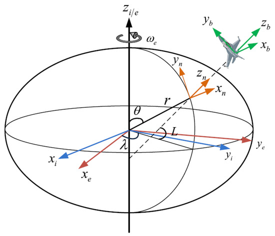 In the context of the INS, it is essential to define parameters within specific reference frames, as shown in Figure 1. Additionally, vectors initially expressed in one frame often need to be transformed into another. Hence, this section explores the coordinate frames employed in deriving the INS [5].