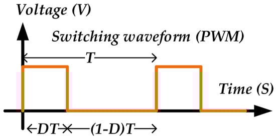 In the analysis of a power converter circuit, we delve into two distinct modes: the switch-on state and the switch-off state. Each state brings about a change in the converter’s configuration, resulting in the derivation of a new set of equations. This section comprehensively examines both of these states. Assuming the switching time period of the power switch is denoted “T”, we can define the time intervals during which the switch is activated as “DT” and when it is deactivated as “(1-D)T”. Figure 2 visually illustrates these switching time intervals.