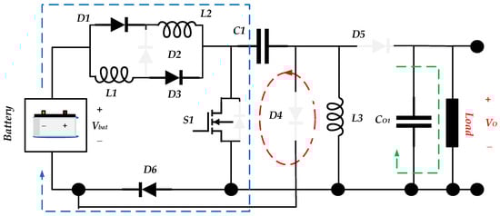 The configuration of the switch-off-state mode of the proposed buck–boost converter.