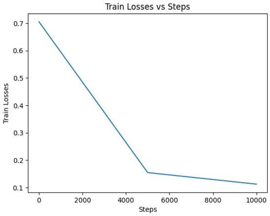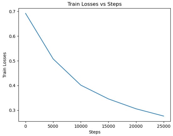 - DistilBERT: The DistilBERT model was trained on the dataset using appropriate hyperparameters and optimization techniques. After training, the model achieved a high accuracy of 97.48% on the evaluation set of 5000 entries, indicating its ability to effectively classify tweets as indicative of depression or not. The cross-validation results for the DistilBERT model yielded a mean accuracy of 97.174% with a standard deviation of 0.3965. The loss value of 0.314 further demonstrates the model’s capability to minimize errors during training and optimize its predictive performance. A lower loss value indicates a better fit of the model to the training data. The accuracy and loss curves, shown in Figure 13 and Figure 14, provide valuable insights into the model’s training progress. The accuracy curve demonstrates how the model’s accuracy improved over successive epochs, while the loss curve depicts the decreasing trend in the model’s loss during training. These curves reflect the model’s ability to learn from the training data and make accurate predictions.