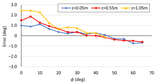 Recognition error of marker angle () with the proposed camera control for different depth distances (z).
