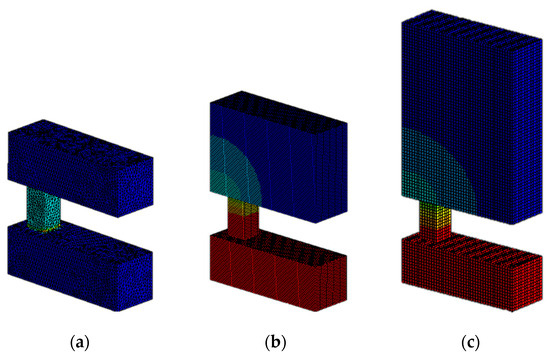 The structural configuration was designed in such a way that current is injected into the upper metal line while being extracted from the lower metal line. This configuration allowed us to delve into the intricate details of the simulation outputs within the Ansys environment. The simulation allows for thermal analysis of structures implemented using various parameters [22]. Its outcomes encompass a spectrum of parameters, including current density, heat distribution attributed to Joule heating, and the resulting temperature changes across different spatial regions. The comprehensive nature of these results provides extensive insight into the complex interplay between various factors that influence the behavior of the interconnect structure. As shown in Figure 2a,b, the gradual modification of the via size unveils the intricate relationship between dimensions and temperature profiles across distinct regions, reinforcing the need for a nuanced approach in interconnect design to ensure optimal performance and reliability. Figure 2c provides a zoomed-in perspective, specifically focusing on the via region. This detailed view offers a deeper understanding of the temperature distribution across different mesh points, shedding light on the local variations in temperature and other critical parameters.